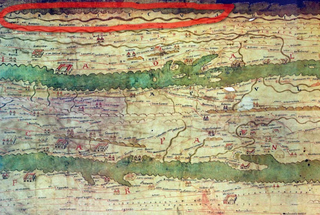 Tabula Peutingeriana, 1-4th century CE. Facsimile edition by Conradi Millieri, 1887/1888. . На верху видно, что за границей империи находится Сарматия: