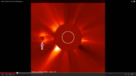 Гигантское небесное тело наносит удар по Солнцу - Солнце отвечает мощной вспышкой. Что делает NASA - показывает событие? Нет, оно в своём привычном репертуаре, просто вырезает кадры из изображений,