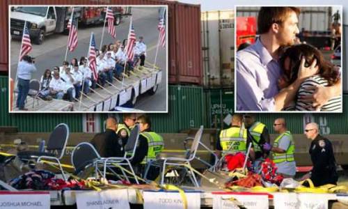Фото: dailymail.co.uk В США парад в честь ветеранов закончился трагедией: в автоплатформу, на которой находилось 24 участника торжественной церемонии, врезался скоростной поезд. В результате