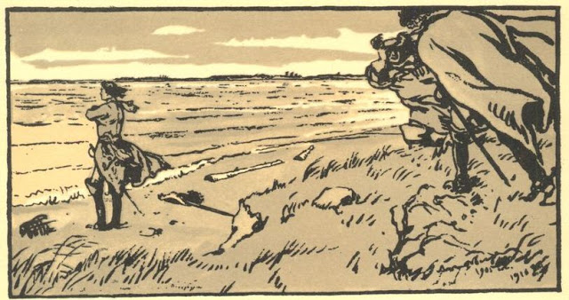 Пушкин нам подсказывает как было дело: "На берегу пустынных волн Стоял Он, дум великих полн, И вдаль глядел. Пред ним широко Река неслася; бедный челн По ней стремился одиноко. По мшистым топким берегам Чернели избы здесь и там, Приют убогого чухонца."